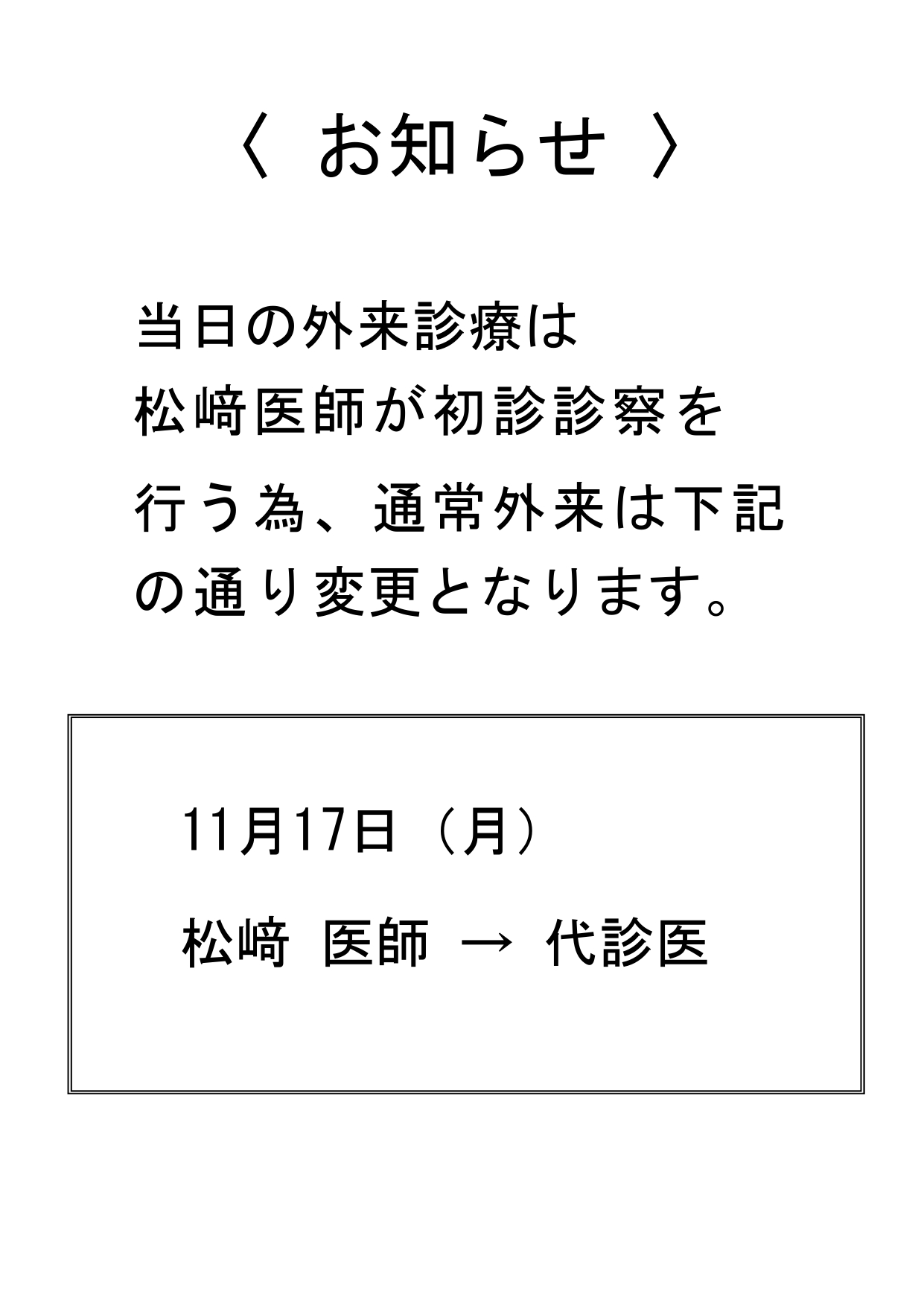 Home >  お知らせ >  外来診察担当医 診療変更のお知らせ(11/17)