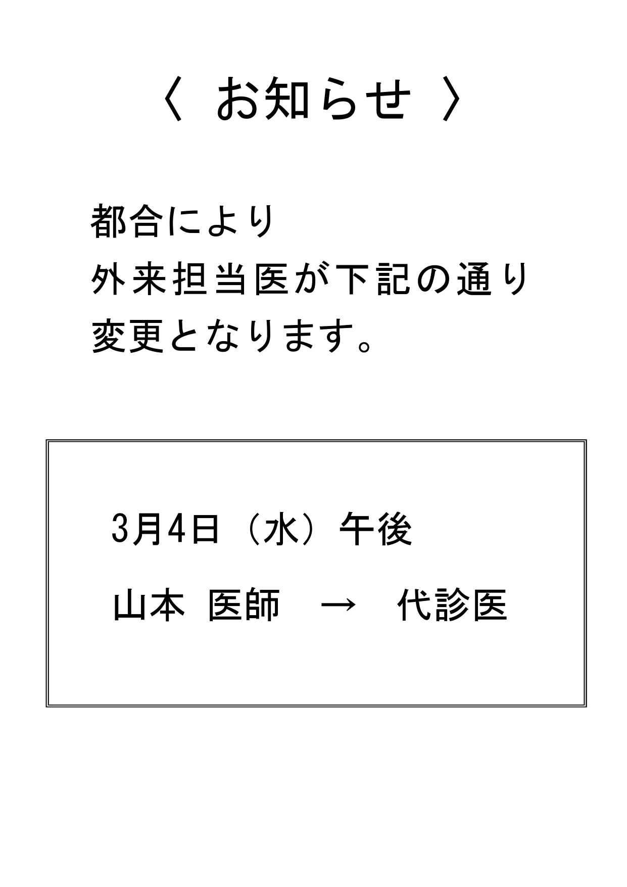 外来診察担当医 診療変更のお知らせ(3/4)