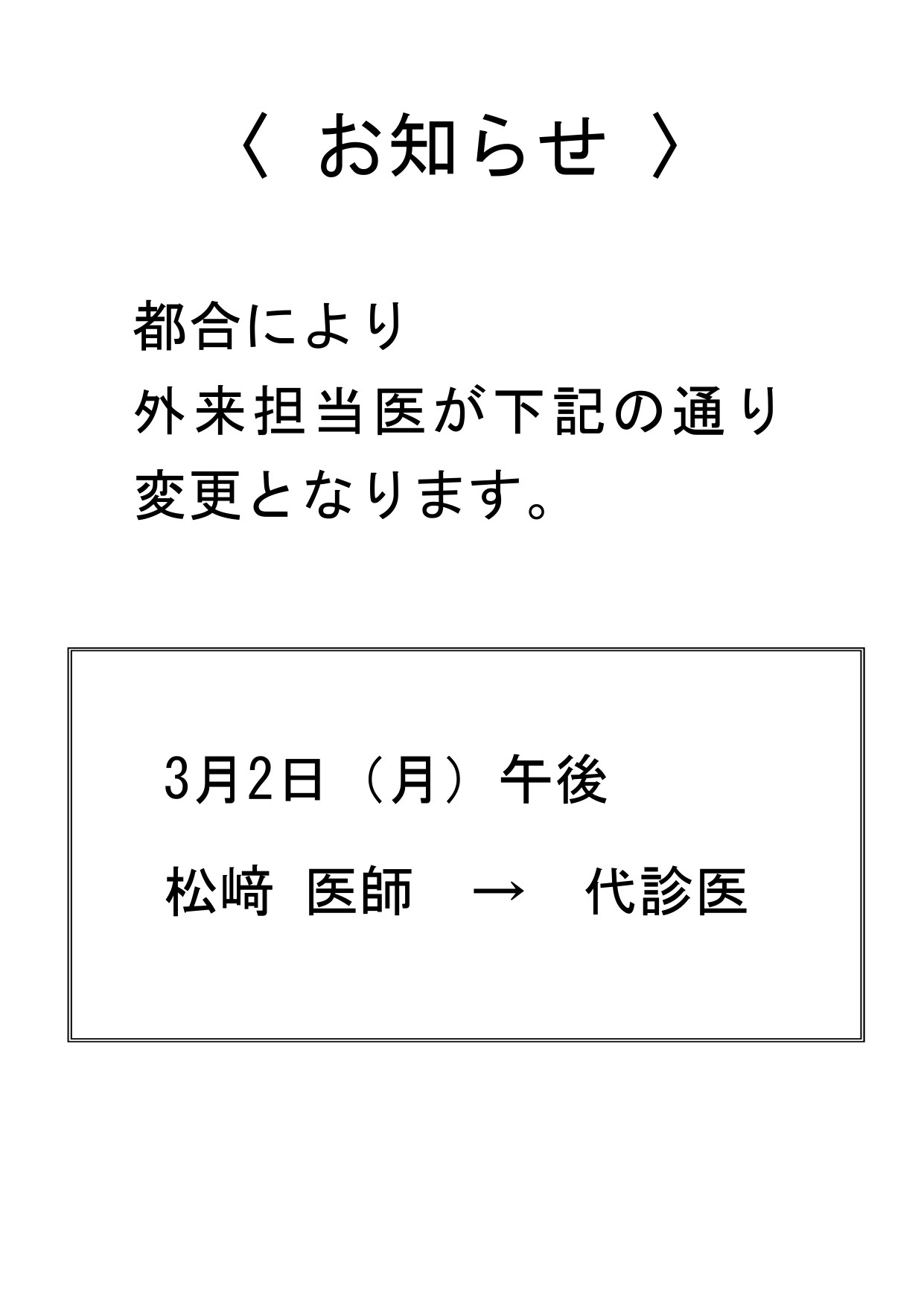 外来診察担当医 診療変更のお知らせ(3/2)